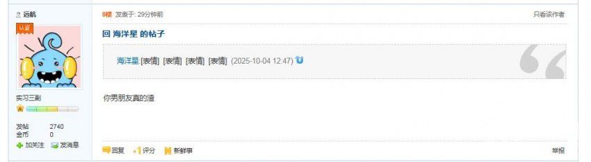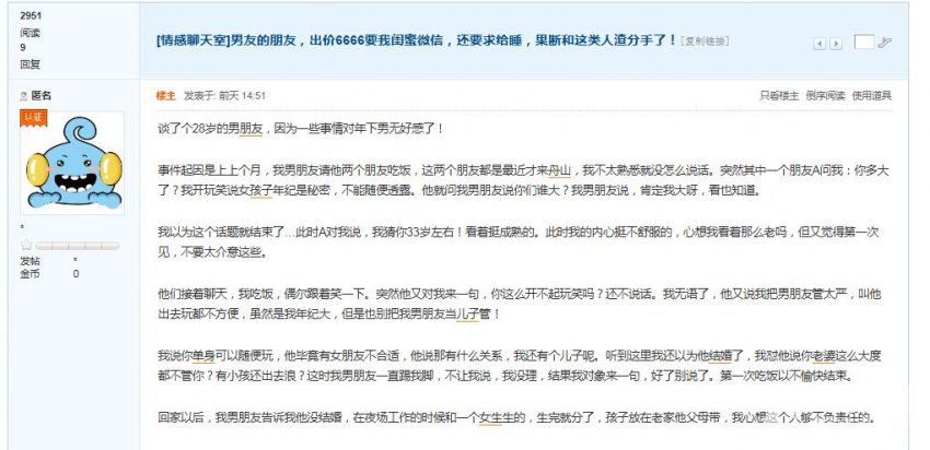 那个网名是“远航”的搞错了,我不是那个匿名发帖的楼主,我在那个帖子下面,